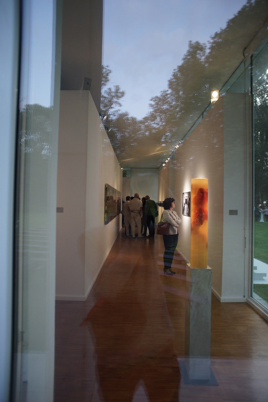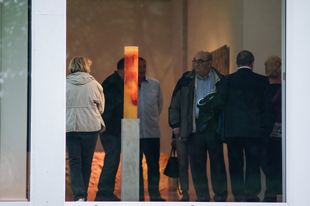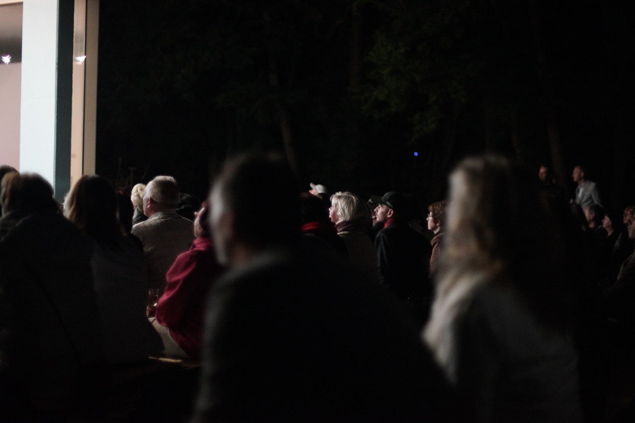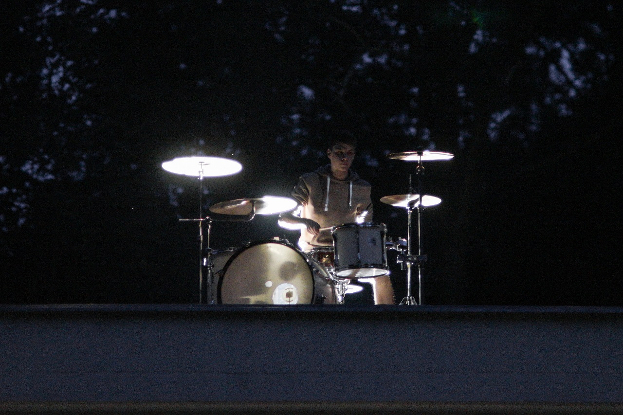 Součástí večera bylo hudební vystoupení Čeňka Chlebouna s vlastní improvizací na bubny umístěné na střeše White Gallery.