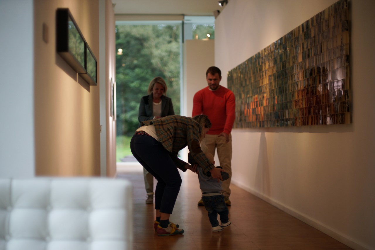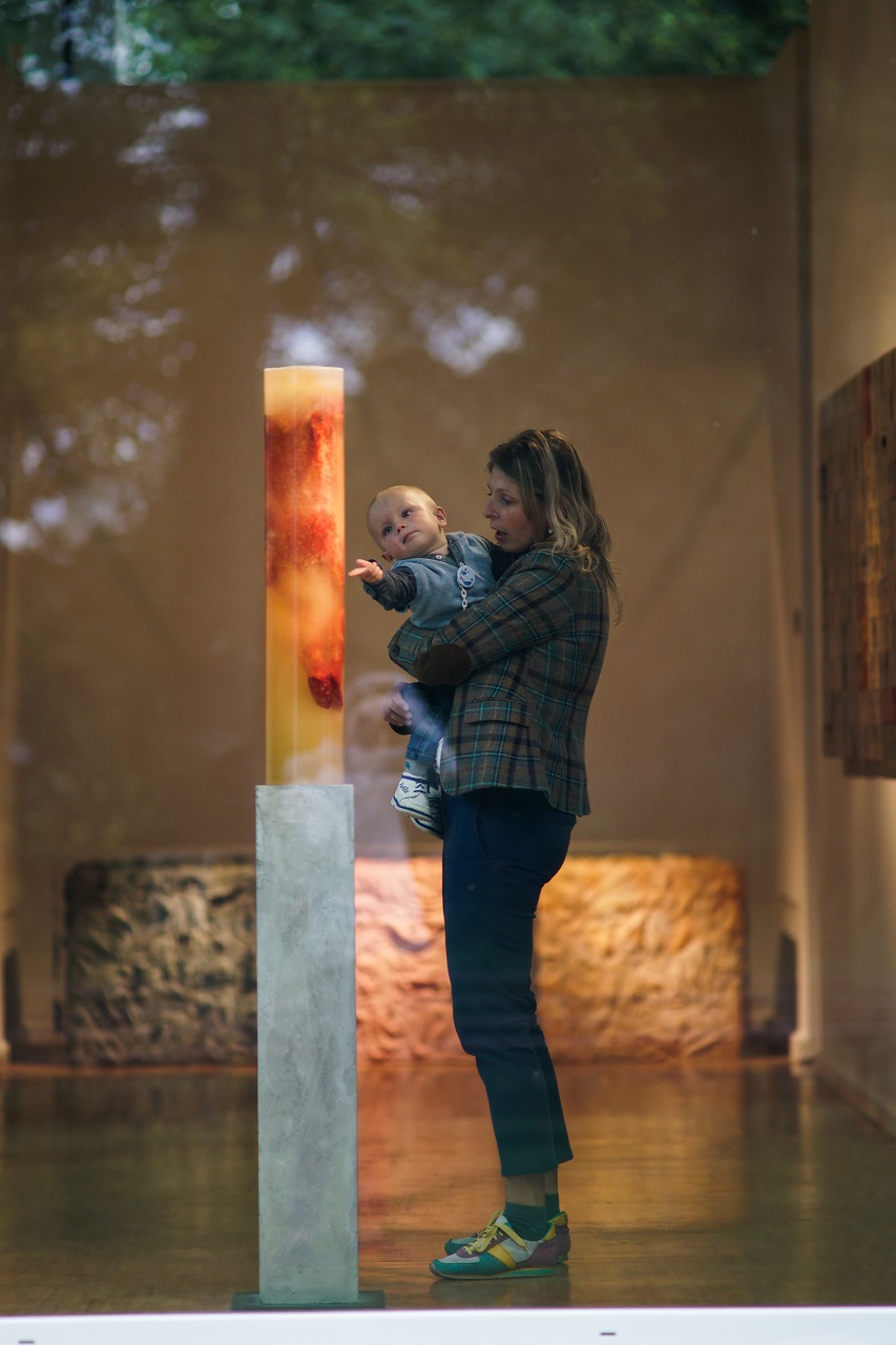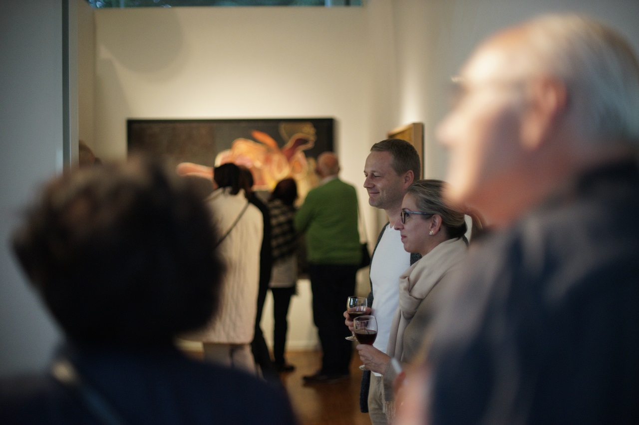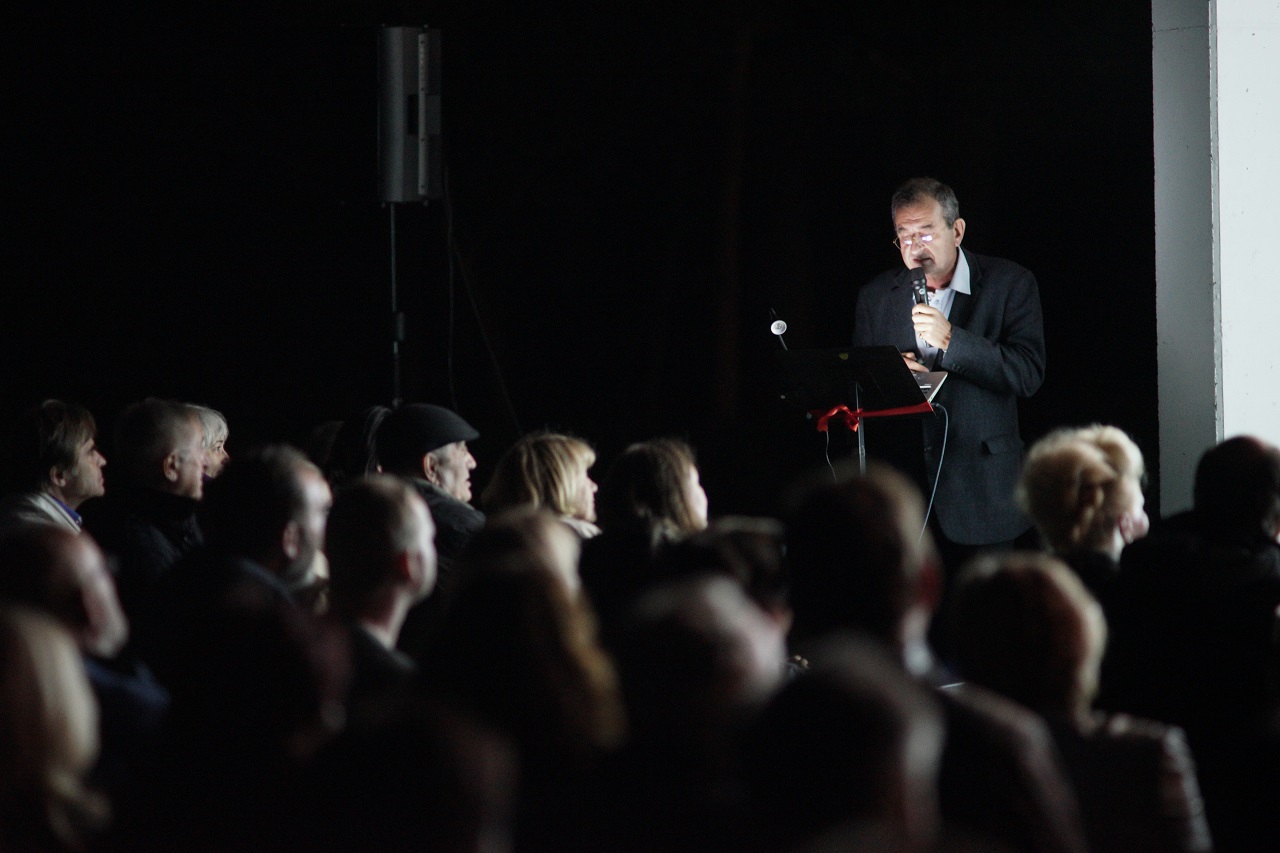 Součástí večera bylo hudební vystoupení Čeňka Chlebouna s vlastní improvizací na bubny umístěné na střeše White Gallery.