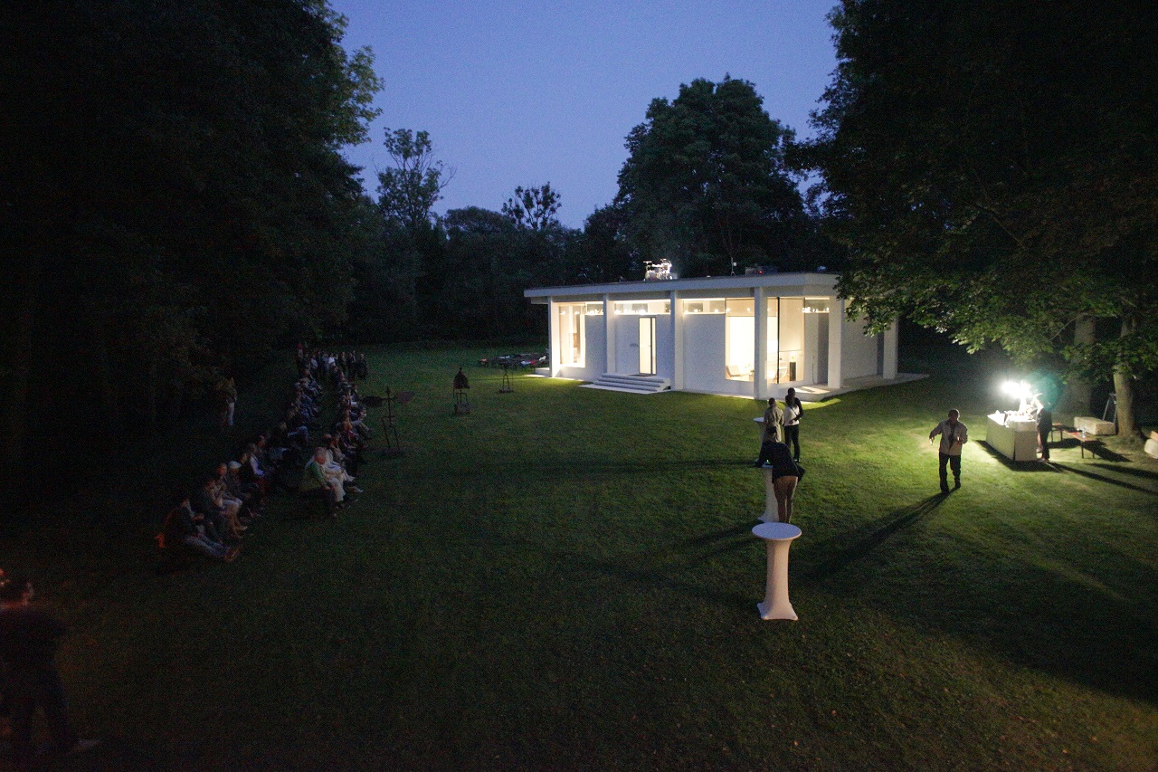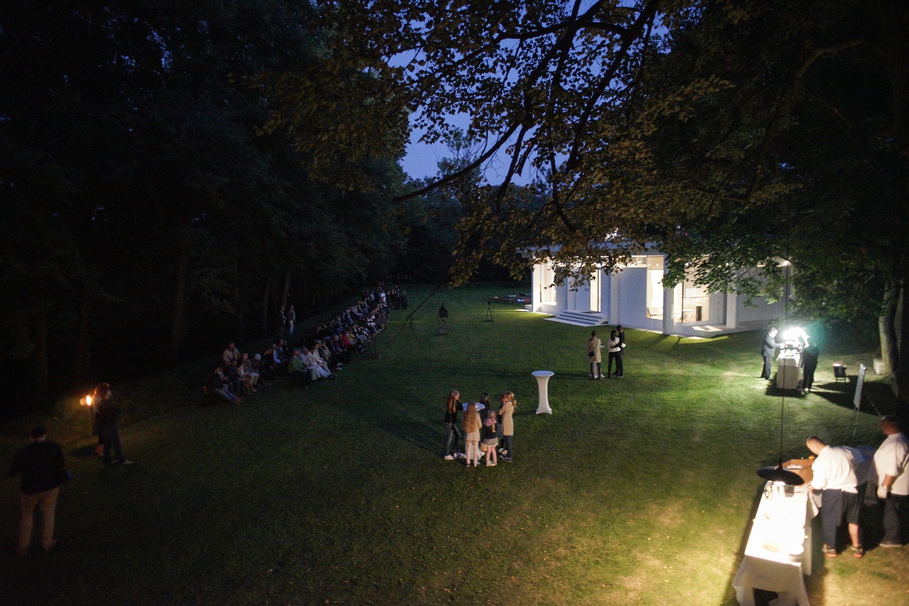 Začátek přednášky pod nočními hvězdami se konal 22. 8. 2017 ve 20:30 hod. na zahradě White Gallery u příležitosti aktuální výstavy Daniela Pešty "Gen Y!" Večerní prohlídka výstavy s malou zahradní slavností byla otevřena od 19:00 hod.
