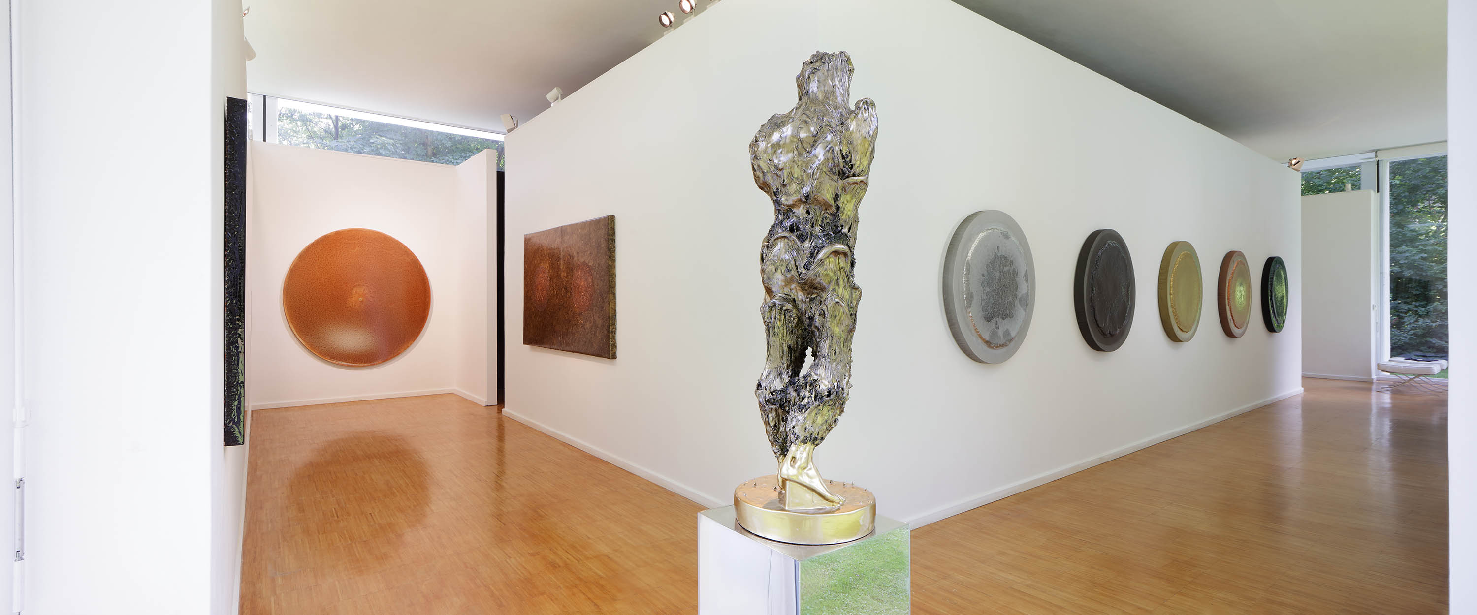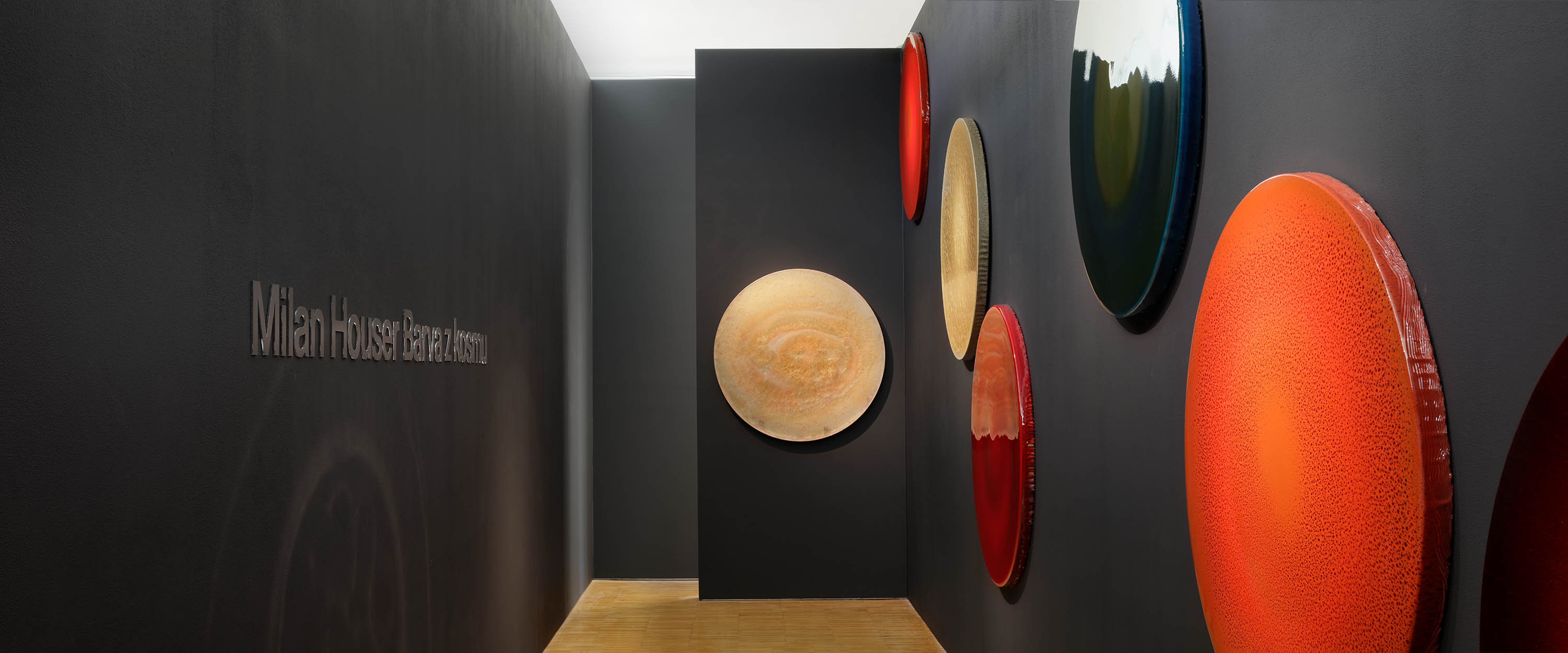 Zlato je barvou z kosmu vzniklé kolizí neutronových hvězd a explozí supernov. Váže se k němu plno významů a metafor, někomu spojených se třpytem zlatých zubů v ústech, jinému třeba s pohledem do slunce. Výstava Milana Housera se okazuje ke sci-fi povídce H. P. Lovecrafta, která pojednává - jak je pro tohoto spisovatele typické - o fascinující bezcitnosti vesmíru a křehkosti antropocentrismu. Je jednou z mnoha Lovecraftových variant zkázy a konce světa, které se tentokrát dějí prostřednictvím krásné, vábivé barvy, v níž je cosi ničivého. Pro tuto výstavu si Houser záměrně vybírá obrazy, které mají zcela redukované barevné pojetí a které nabízí jenom a právě pohled do barvy. Posilují se tím i typické rysy Houserovy malířské tvorby: důraz na vizuální interakci okolního světa s obrazem, kdy obraz vzniká až na základě světla, odrazu a zrcadlení okolí. Stejně tak nám stahuje pozornost na naše vlastní vnímání, na tvorbu reality naším pohledem. Soustava zářících monochromů je stejně tak uhrančivá jako vyprázdněná.